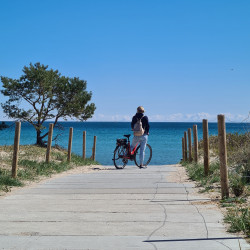 Vom Bahnhof Sassnitz mit dem Bus in Richtung Binz (Linie 20) Haltestelle Hülenkrug von dort ca. 15 Min. zu Fuß