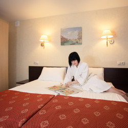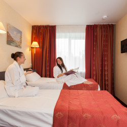 Das 3-Sterne Hotel verfügt über 287 komfortabel ausgestattete Zimmer mit Badezimmer mit Badewanne und Fenster zum Öffnen.