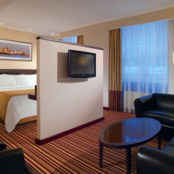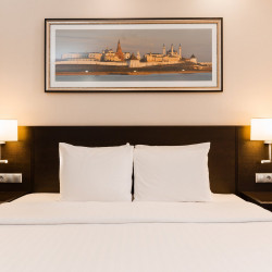 The Hotel perfectly located of the Kazan city center - the Kazan Kremlin is the chief historic citadel of Tatarstan, just steps away from the main attractions, business/shopping districts. Hotel is modern, offers excellent amenities with a personal touch. The Hotel perfectly located near the heart of the city Kazan - the Kazan Kremlin is the chief historic citadel of Tatarstan, just steps away from the main attractions, business and shopping districts. Hotel is comfortable, modern, offers excellent amenities with a personal touch. Rooms are equipped with modern furniture: King or 2 double beds, desk, armchair, coffee table, TV, central climate control system, tea making, ironing areas. WI-FI throughout the hotel, 24h business centre as well as fitness room with all you need for the morning stretch-out equipment. F&B services include rich breakfast buffet, 24h pantry The Market, a la carte restaurant The Steakhouse offers international cuisines and national Tatar dishes. For celebrations and other events, there is a panoramic roof terrace with stunning views of the city, the river and The Kazan Kremlin. Fully equipped hall-transformer named after M.Jalil, which is perfect for holding any format for business events with a wide variety of creative menus.