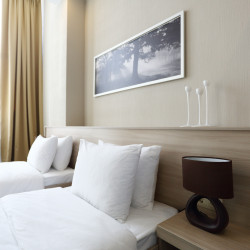 Das 3-Sterne Hotel verfügt über 26 komfortabel ausgestattete Zimmer mit Minibar, Zimmersafe und Fenster zum Öffnen.