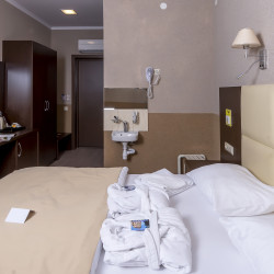 Das 3-Sterne Hotel verfügt über 22 komfortabel ausgestattete Zimmer mit Klimaanlage, Minibar, Zimmersafe und Fenster zum Öffnen.