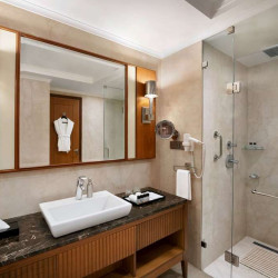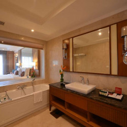 Das 5-Sterne Hotel verfügt über 134 komfortabel ausgestattete Zimmer mit Badezimmer mit Badewanne, Klimaanlage, Minibar und Zimmersafe.