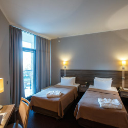 Das 4-Sterne Hotel verfügt über 146 komfortabel ausgestattete Zimmer mit Badezimmer mit Badewanne, Klimaanlage und Zimmersafe.