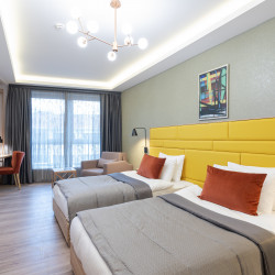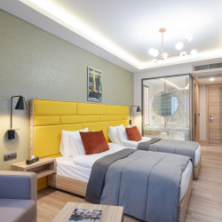 Das 4-Sterne Hotel verfügt über 98 komfortabel ausgestattete Zimmer mit Klimaanlage, Minibar, Wireless LAN, Zimmersafe und Fenster zum Öffnen.